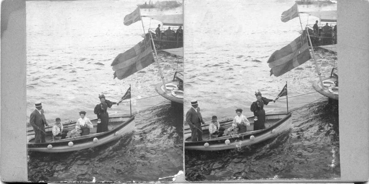 Åskådare följer när Virgo lämnar Göteborg för Spetsbergen, 1896. Stereoskopisk bild.