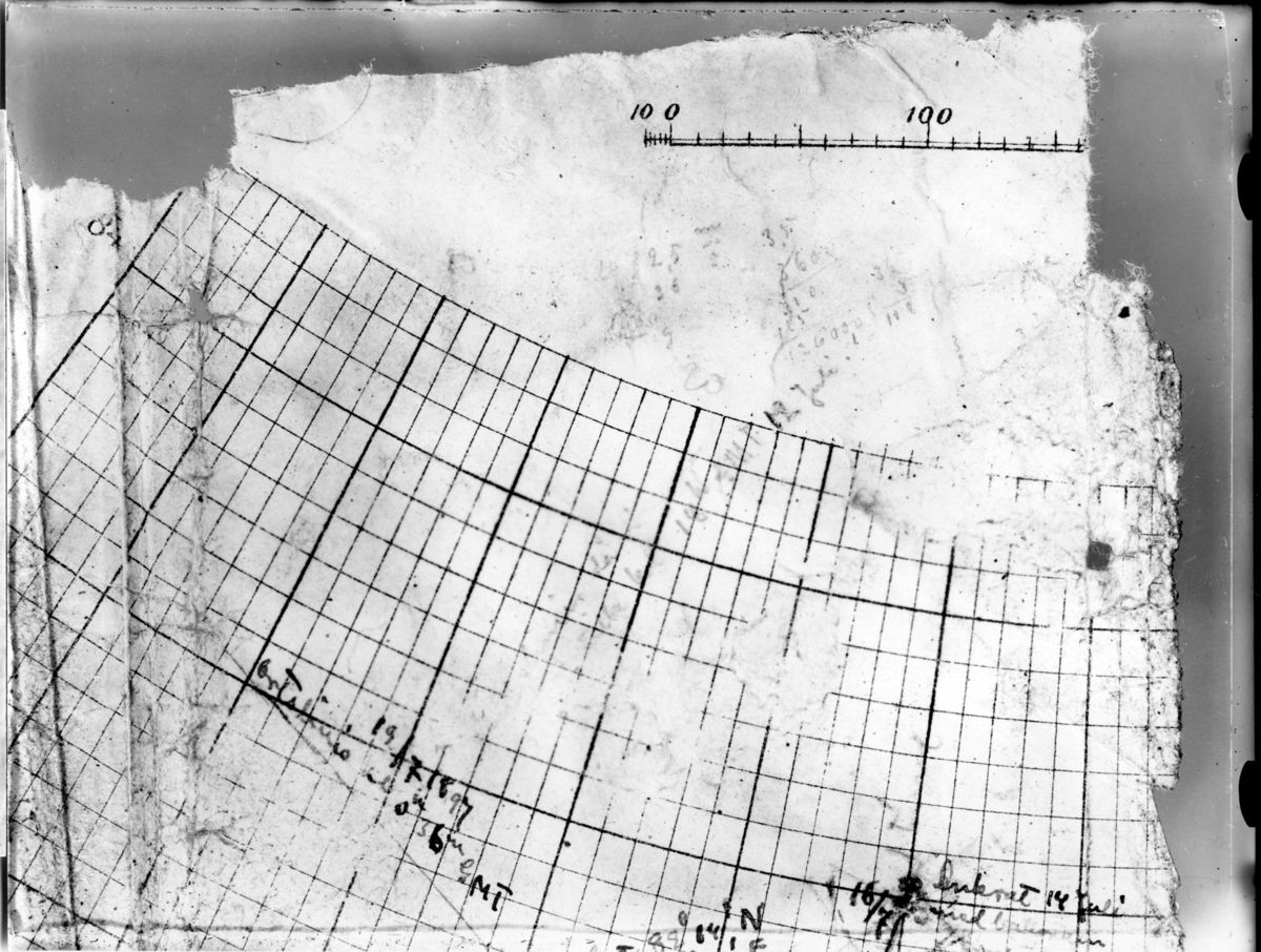 Detalja av N Strindbergs karta över ballong- och slädfärden.