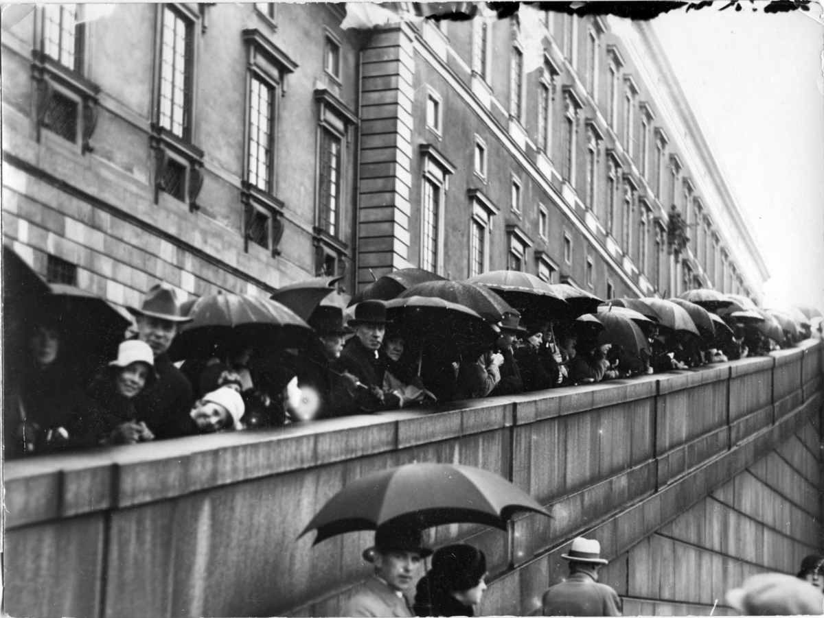 Folksamling i väntan på kortegen med Vitöfynden och dess väg mot Storkyrkan.
