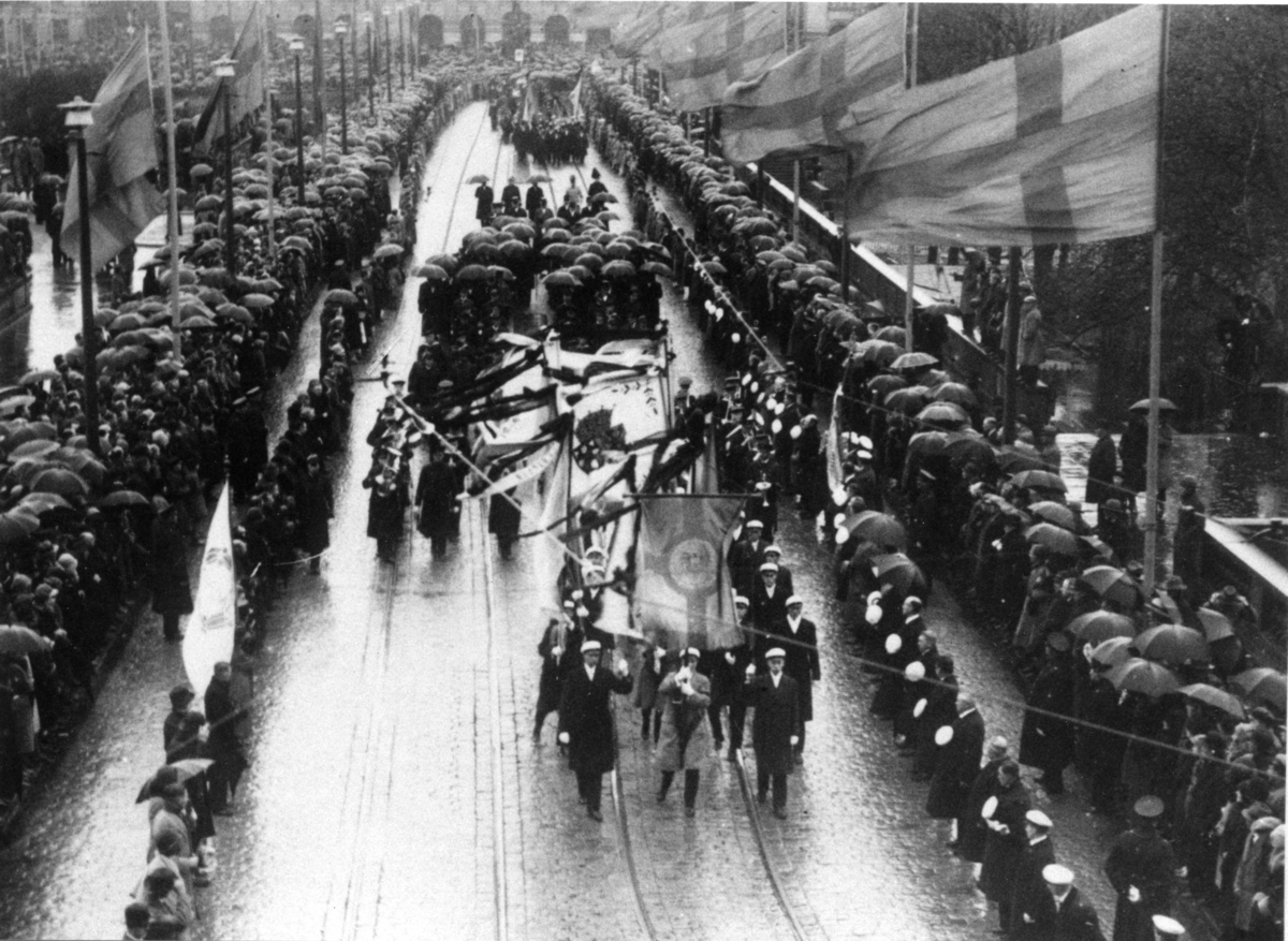 Kortegen med Vitöfynden vid Norrbro på väg till Storkyrkan