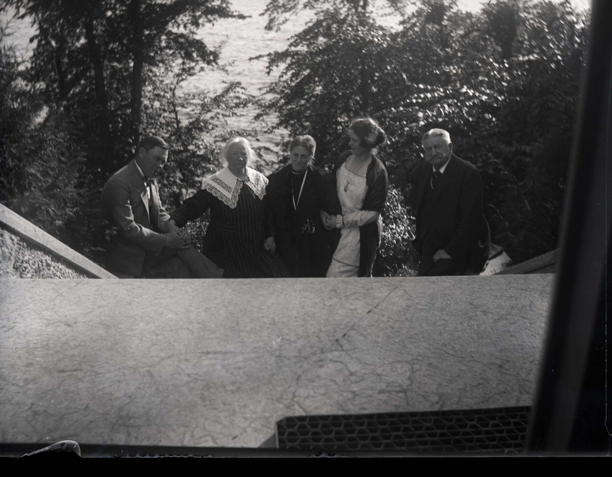 En grupp vid Strand: F Björcke, E Key, K Schade, E Mac Key samt W O Mac Key.