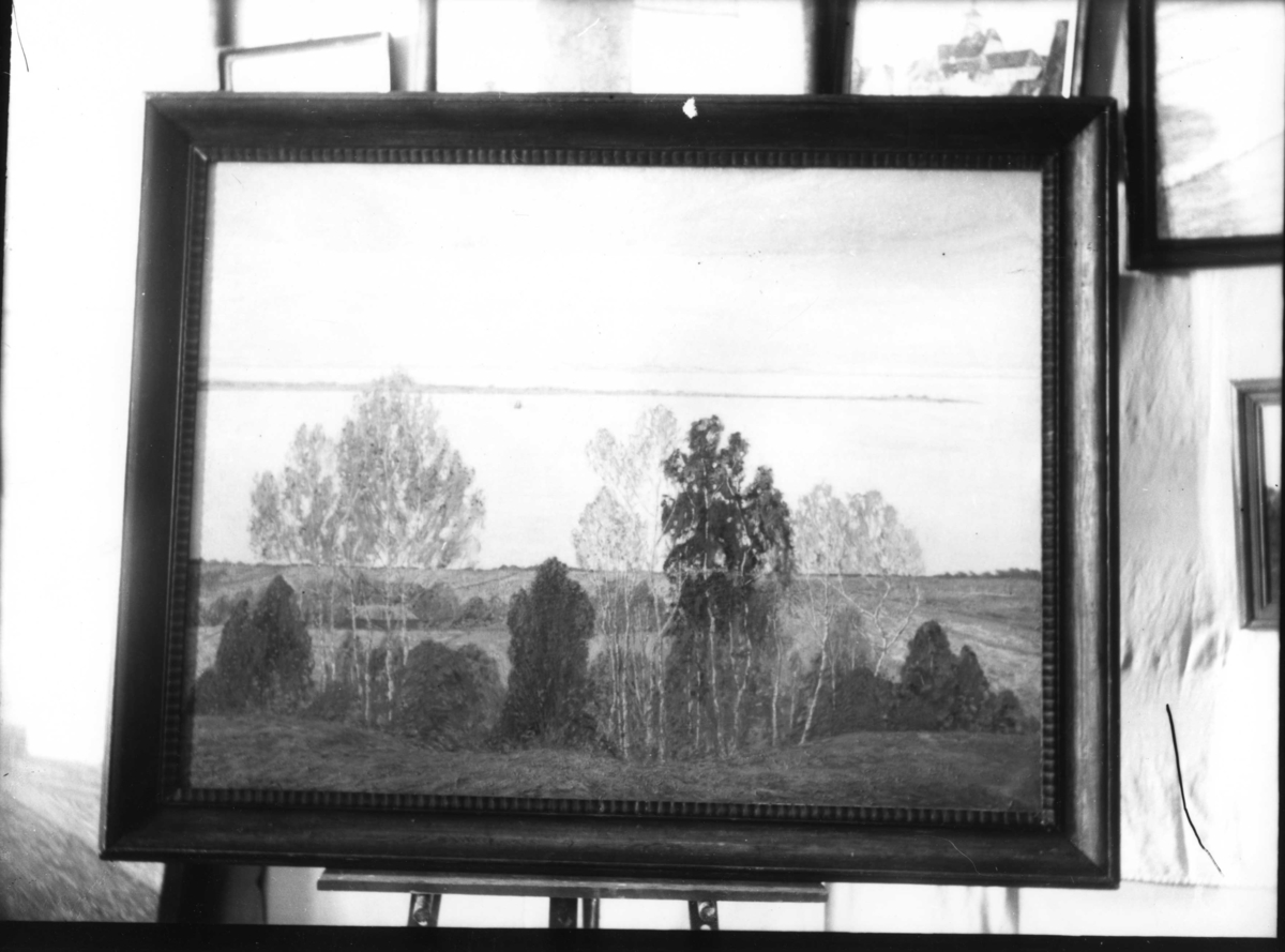 Fotografi av målning av Bengt Hedberg. Från berget ovan Mellby/Uppgränna mot Visingsö.