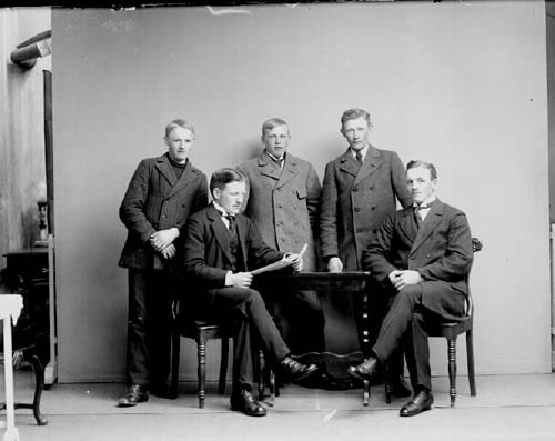 Valfrid Gustafsson i Uppgränna med okända personer.