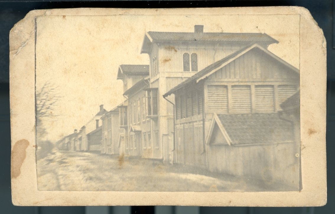 Brahegatan från norr med bl a Hjertströmska gården till höger.