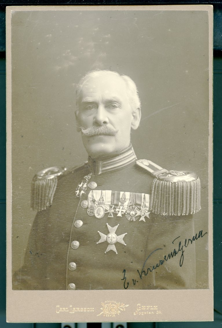 Kabinettsfotografi: W E von Krusenstjerna i uniform med bl a kraschan för Svärdsorden på bröstet.