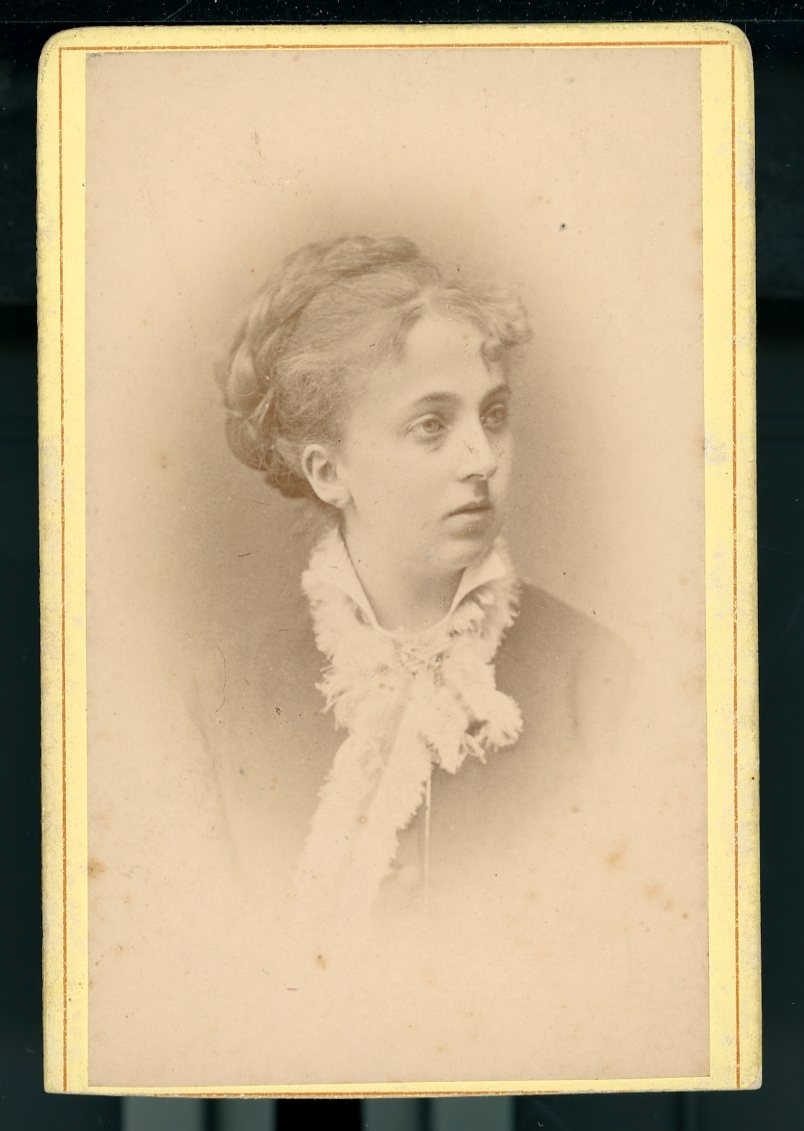 Kabinettsfotografi: Anna Granlund, med uppsatt fläta.