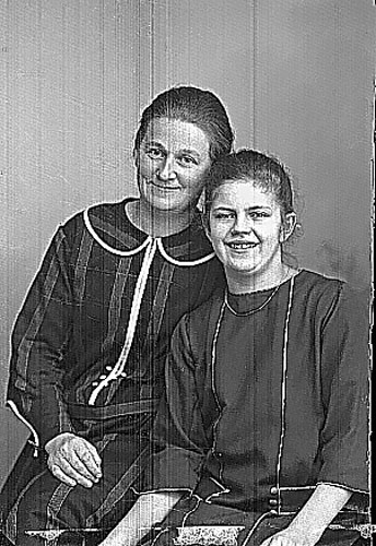 Hanna Lundell, gift Jansson, sittandes och vänskapligt lutad mot dottern Asta.