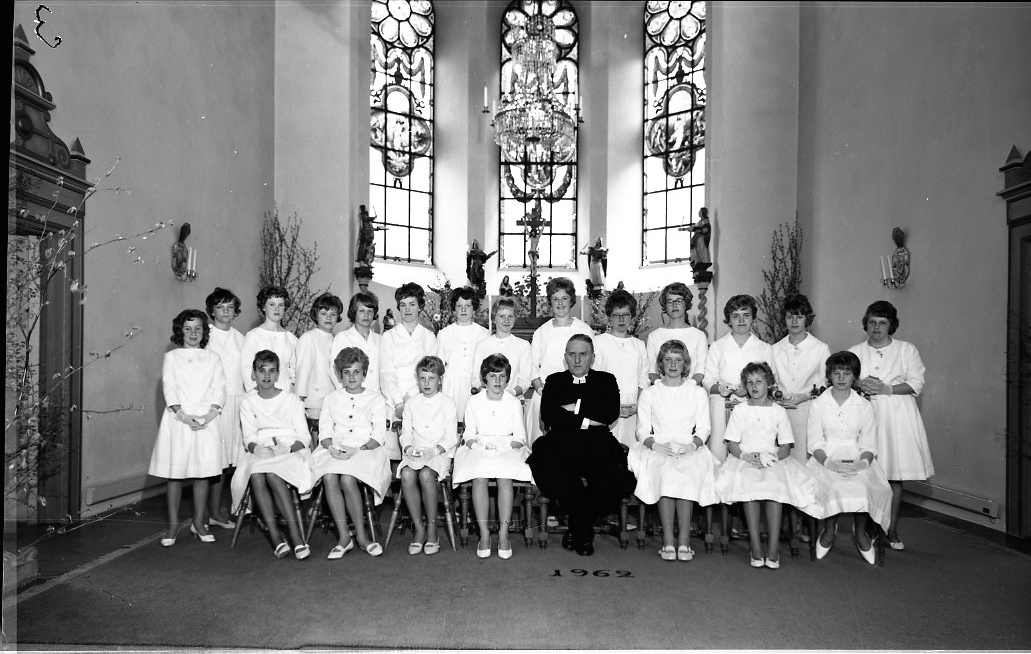Konfirmationsgrupp med flickor i Gränna kyrka.
