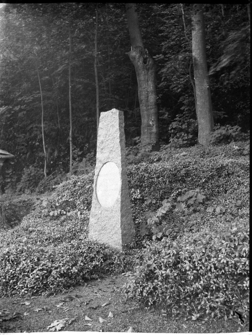 En cirka 2 m hög avsmalnande gravsten över Christina Wilhelmina Åkerhielm, på Gränna gamla kyrkogård.