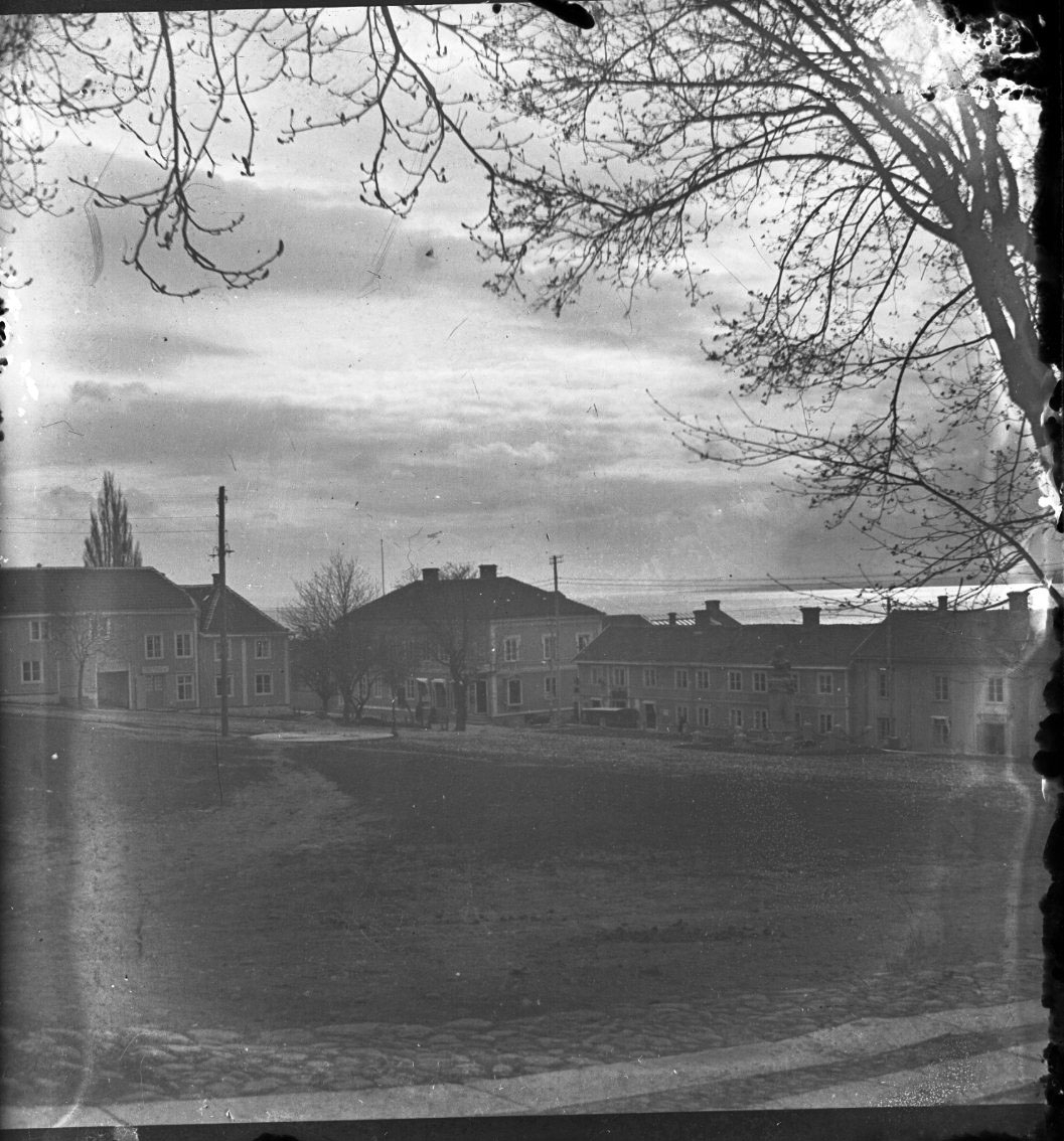 Fotografi av Gränna torg från norr. Brahe-bysten syns i bild vid torgets nederkant.