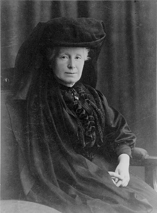 Porträtt av en sittande sorgklädd fröken Anna Hjertström.