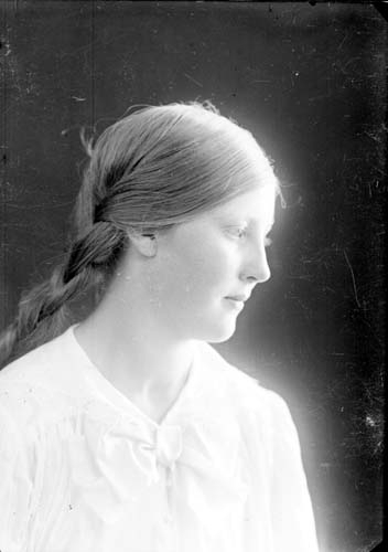 Porträtt av okänd ung kvinna, bröstbild i profil.