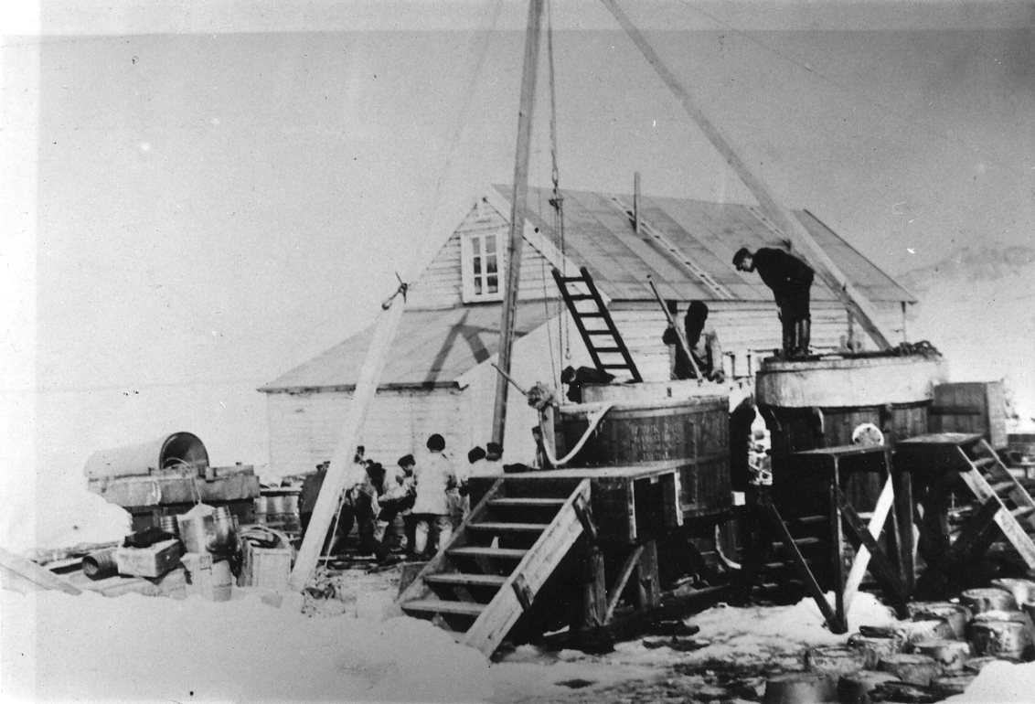 Danskön med vätgaspparaten i centrum. Bakom den syns det så kallade Pikes hus.