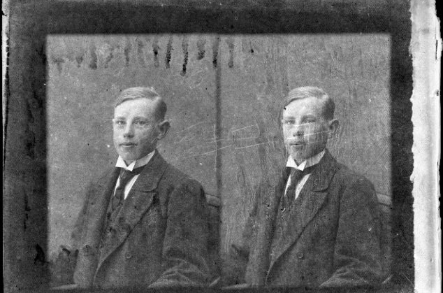 Bröstbild av en pojke. Två bilder på samma glasplåt.