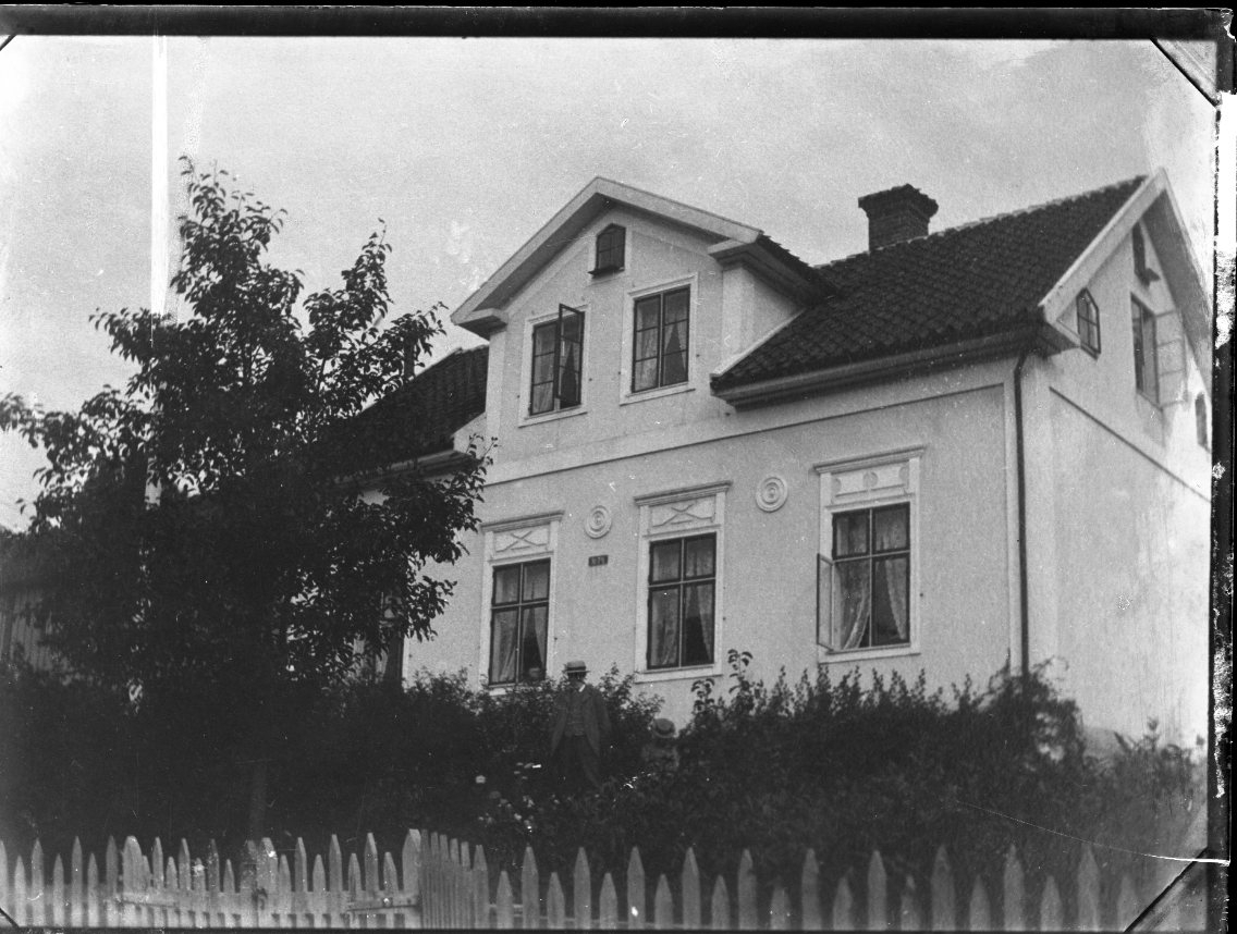 Ett putsat bostadshus utmed Brahegatan i Gränna.