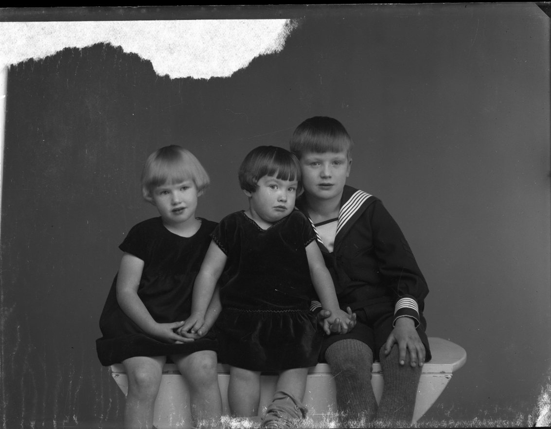 Gruppbild med syskonen Norstedt: två små flickor och en pojke.