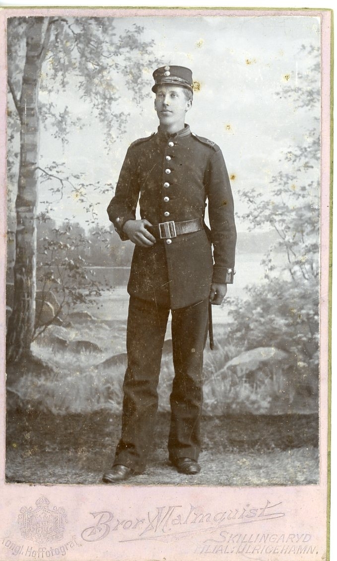 Kabinettsfotografi av en okänd ung man i militär uniform.