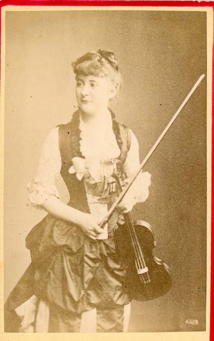 Kabinettsfotografi av en ung kvinna med en fiol.