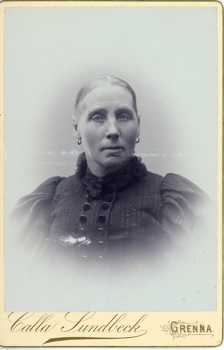 Kabinettsfotografi: bröstbild av en okänd kvinna i mörk klänning.