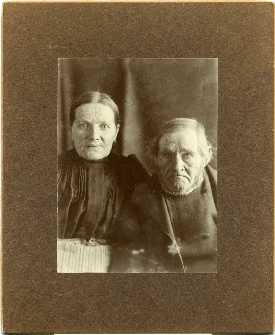 Porträtt av en okänd kvinna och man, med full koncentration tittande mot fotografen.