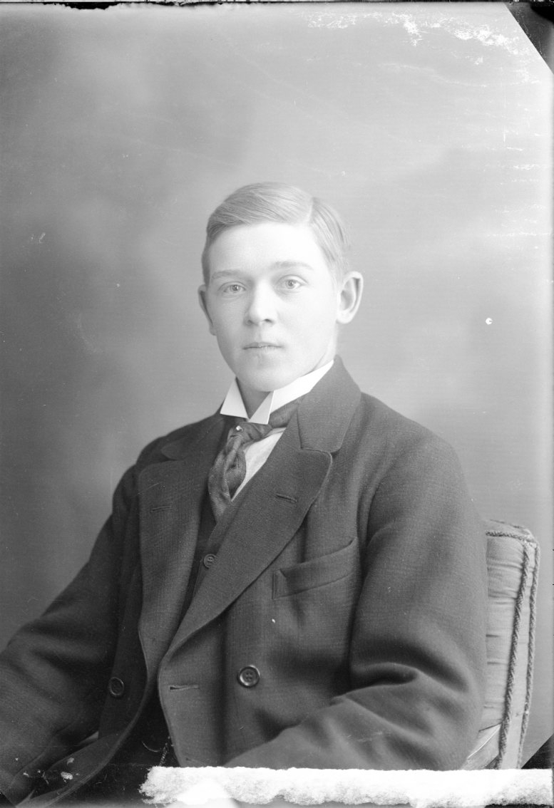 Porträtt av en pojke i tonåren, med slips och slipsnål.
