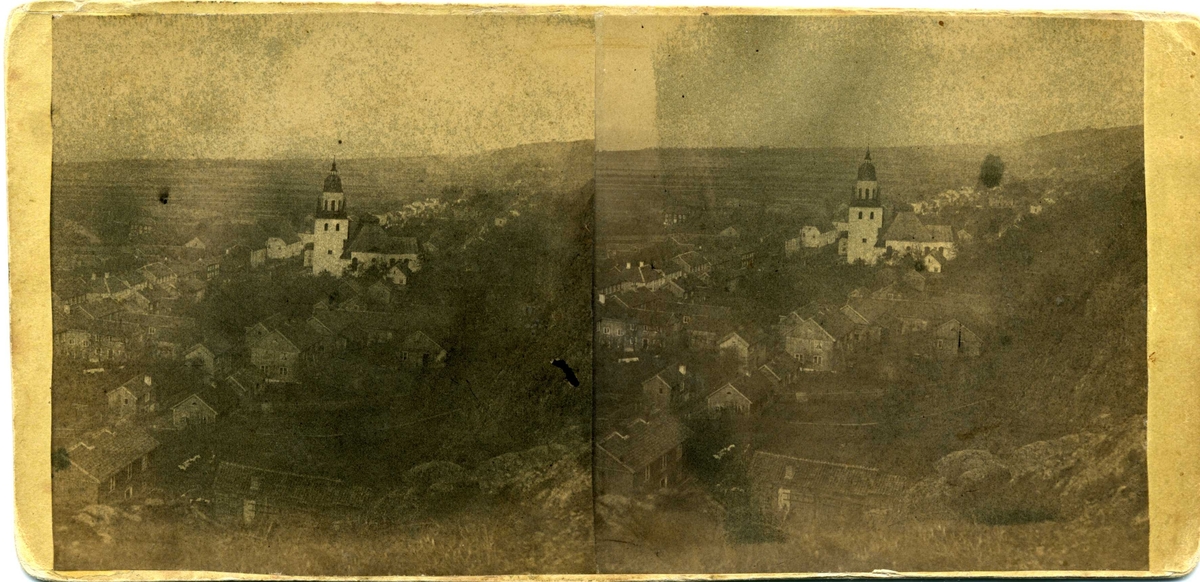 Vy över Gränna norrut från Grännaberget, med kyrkan i centrum. Stereoskopisk bild.