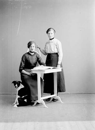 Greta Carlsson från Norra Jordstorp med okänd kvinna och hund.