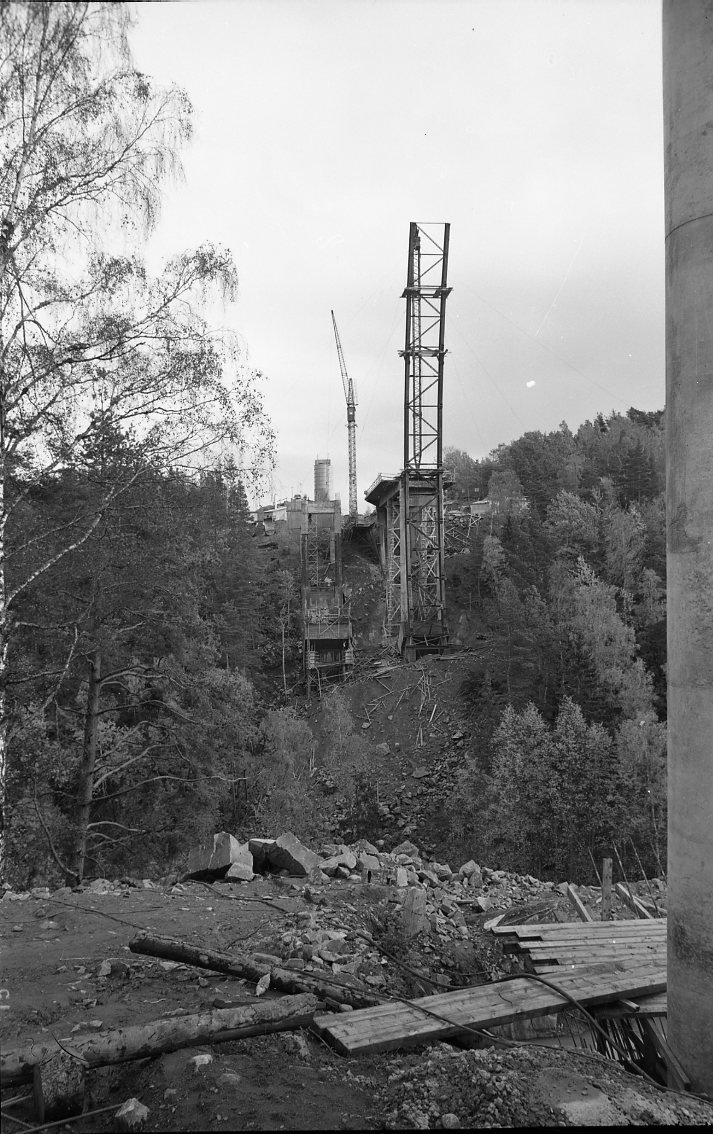 Titel: En motorvägsbro under uppförande över Röttleravinen söder om Gränna.