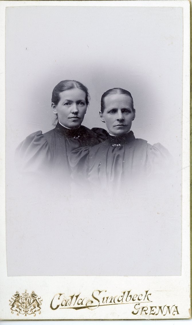 Kabinettsfotografi: en yngre och en äldre okänd kvinna.