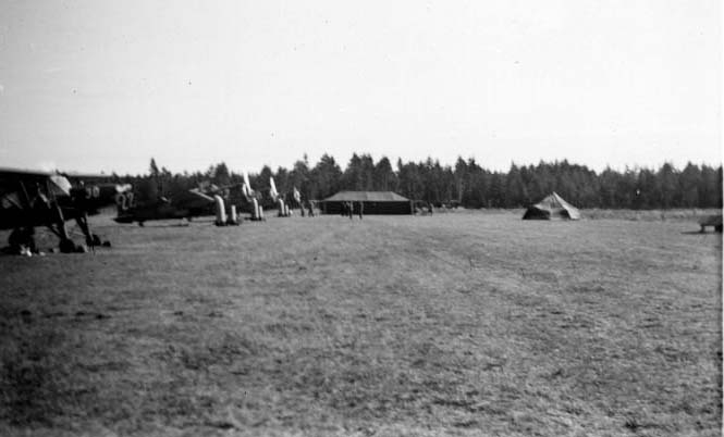 Ett antal uppställda militära propellerplan.