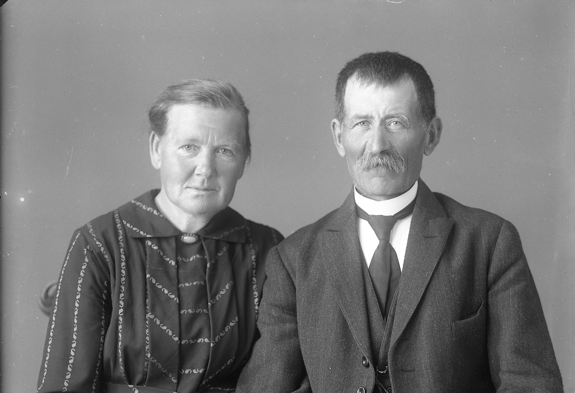 Ett äldre par, en man och en kvinna, i bröstbild. Det är Andersson från Stadsberget i Gränna.