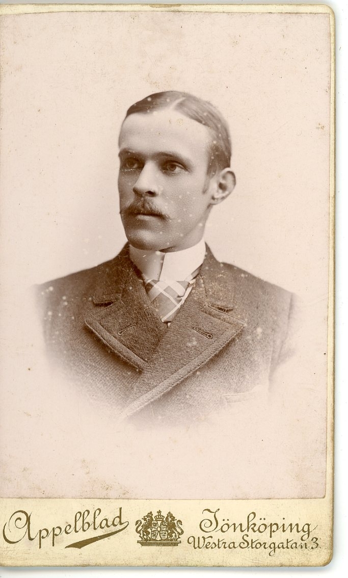 Kabinettsfotografi av en okänd man med mustasch.