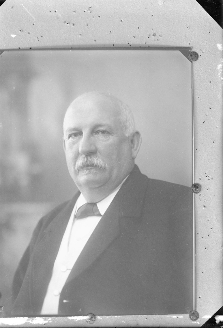 Reprofotografi. Bröstbild av en äldre man med fluga.