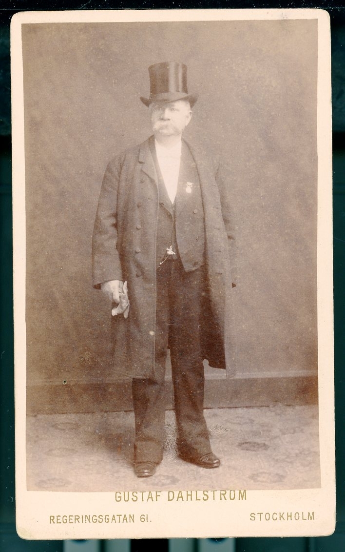 Kabinettsfotografi: J G Hall i rock och stormhatt