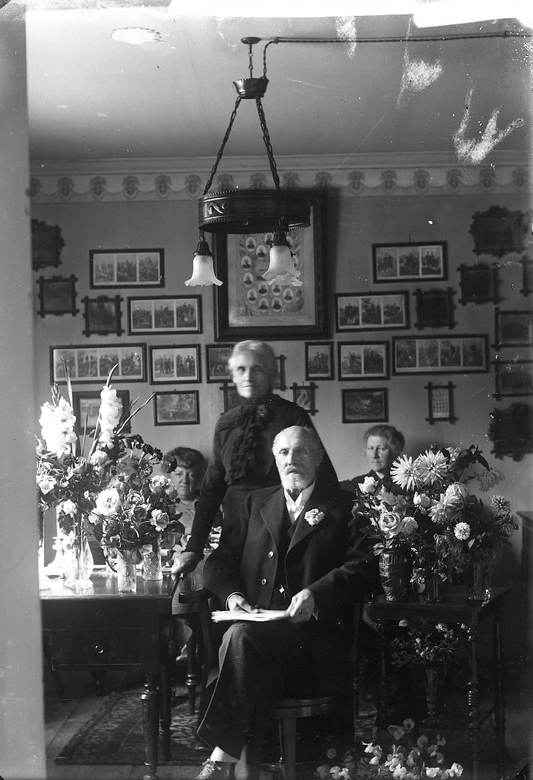 Major Ohlson sitter i en stol i sitt hem omgiven av bord med mängder av blommor. Bakom honom står sannolikt hans hustru Helena Malvina Frick. Två andra kvinnor sitter i bakgrunden. Hon till vänster Maria von Rosen, född Frick. Ett stort antal inramade fotografier på väggen bakom honom, troligen militära scener. Fotografi i samband med hans 80-årsdag.