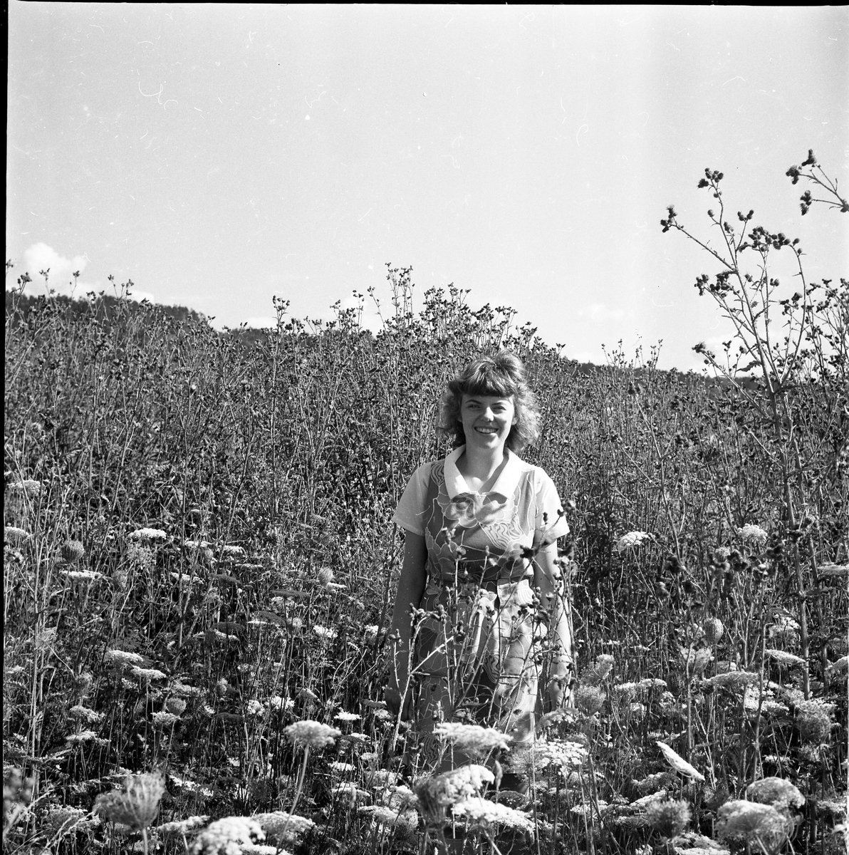 Porträtt av en ung kvinna bland höga tistlar.