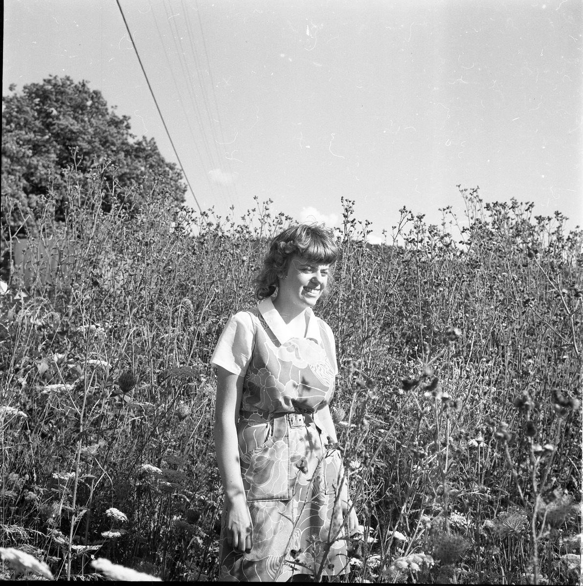 Porträtt av en ung kvinna bland höga tistlar.