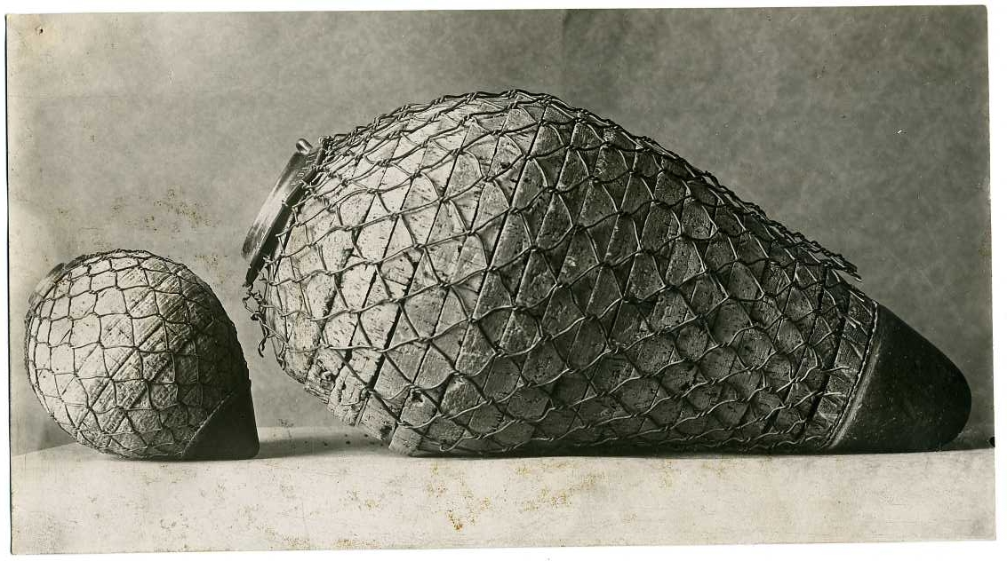 Fotografi av en mindre och en större flytboj från S A Andrées polarexpedition.