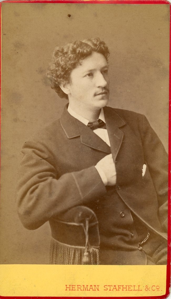 Kabinettsfotografi av en okänd ung man med lockigt hår.