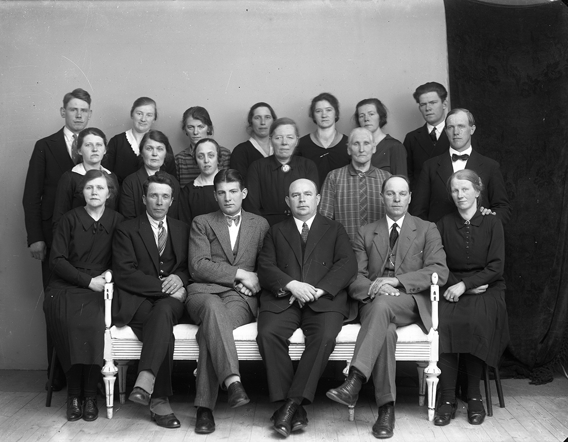 Gruppbild med kvinnor och män. Det är filadelfiaförsamlingen, troligen i Gränna.