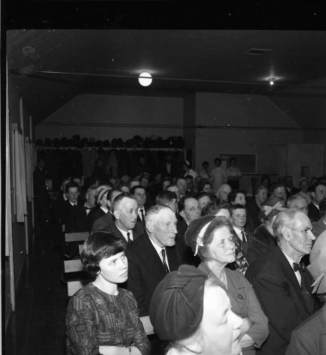 Publik i samband med värdinnekurs i Skärstad 1960-1961. I publiken syns Carl Bostig, John Sjöberg och allra längst till höger Lennart Hörnstein.