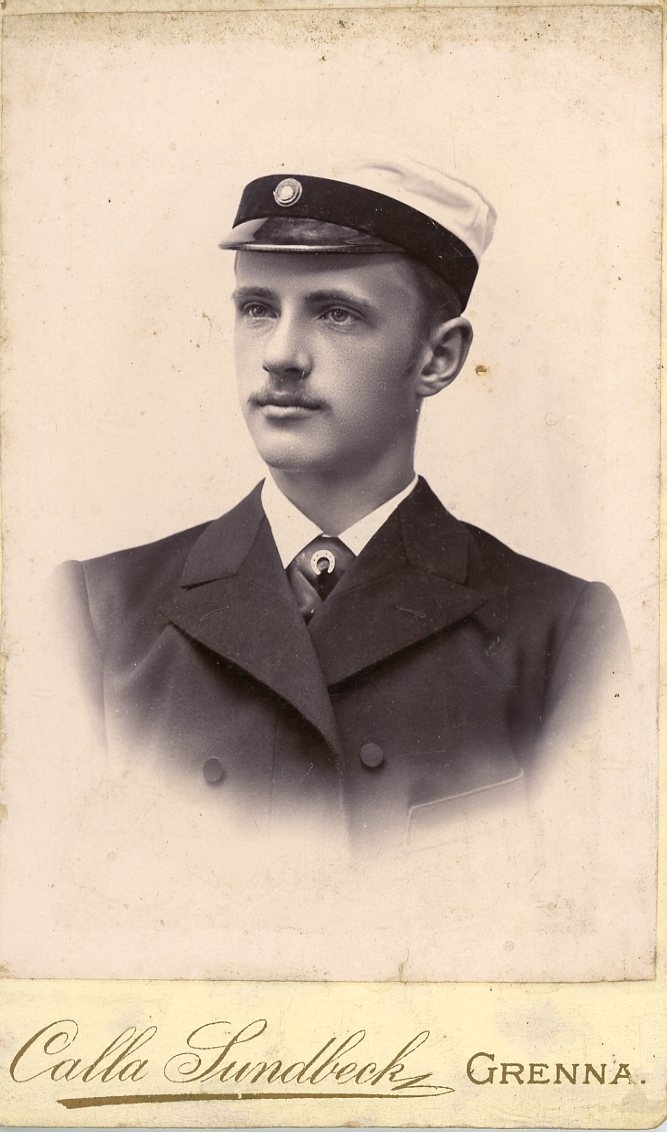 Kabinettsfotografi av en okänd ung man med studentmössa.