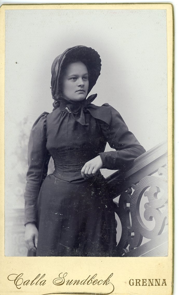 Kabinettsfotografi: en okänd ung kvinna med bahytt på huvudet.