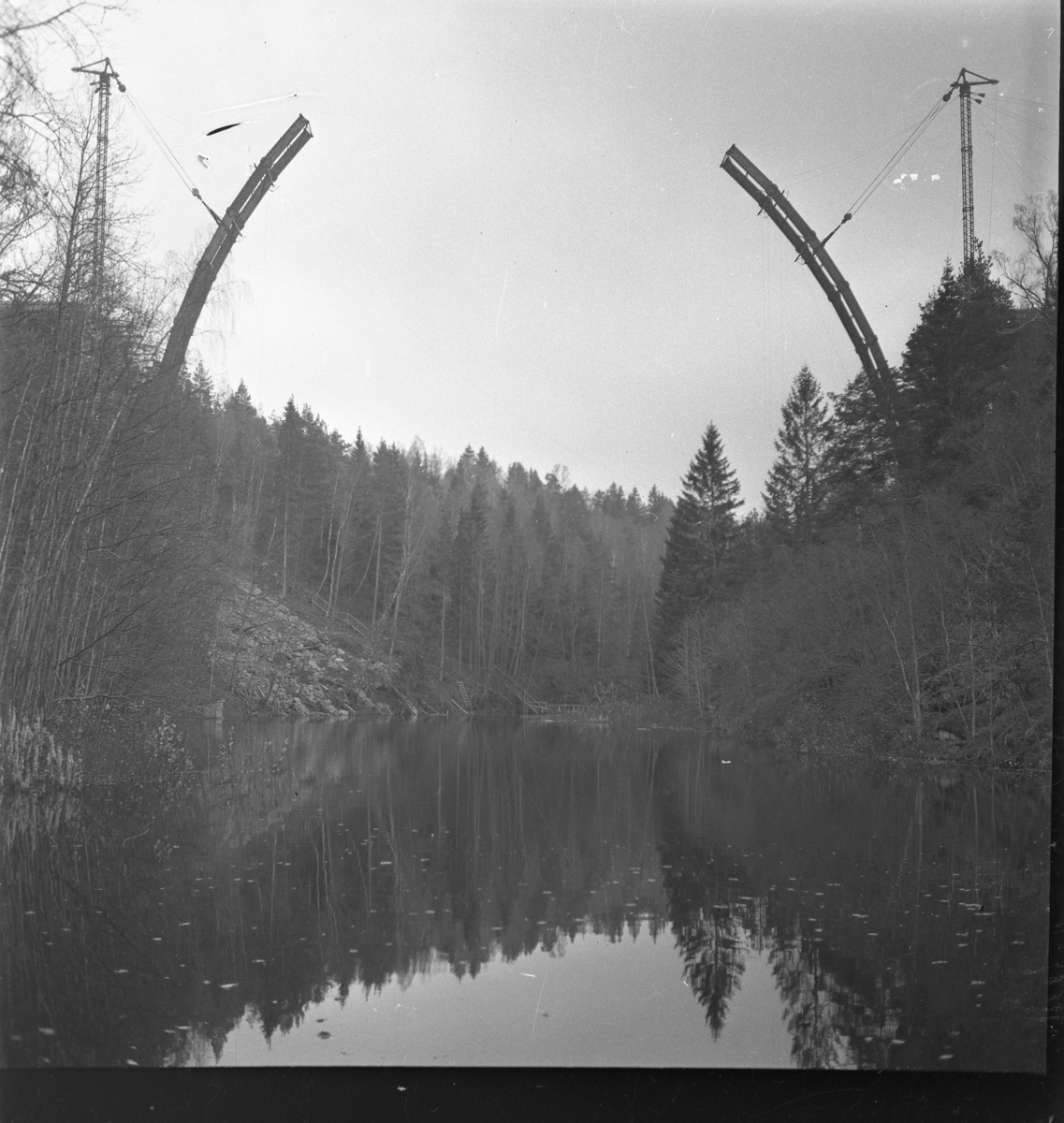 Arbete med bron över Röttle. I samband med motorvägsbygget vid Gränna, etapp II.