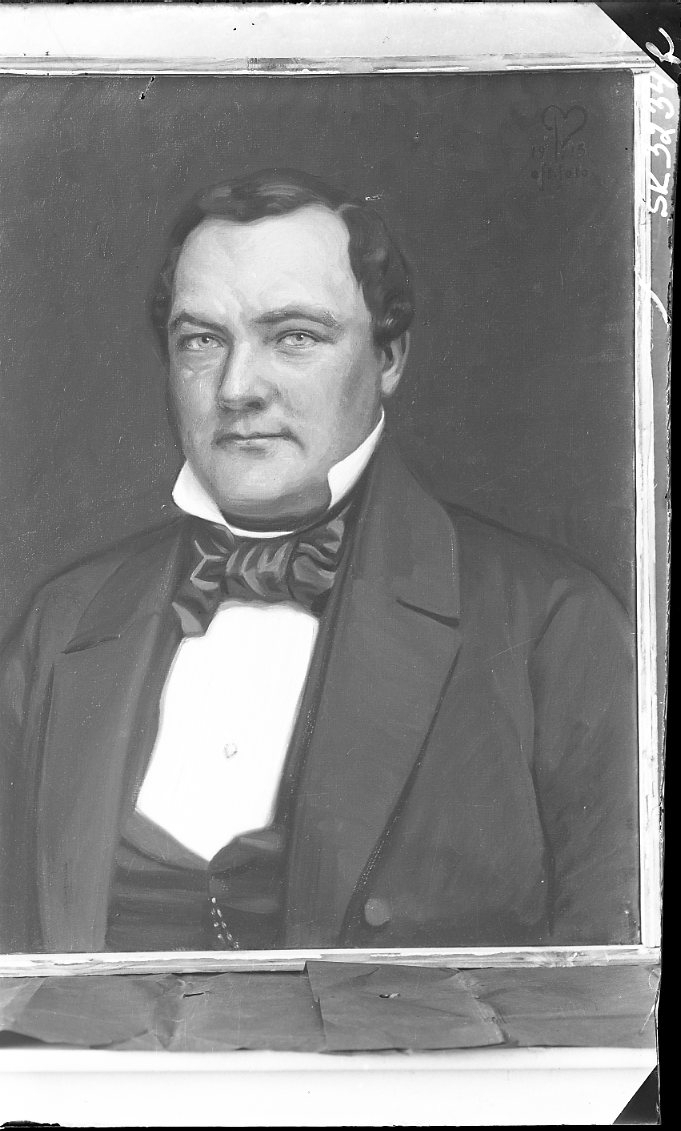 Fotografi av porträttmålning av Pelle Malmborg, prel. 1903, föreställande ingenjör S G Weman, Aranäs.