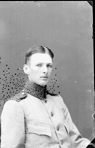 Bröstbild, 3/4-profil, av en ung man i militär uniform.