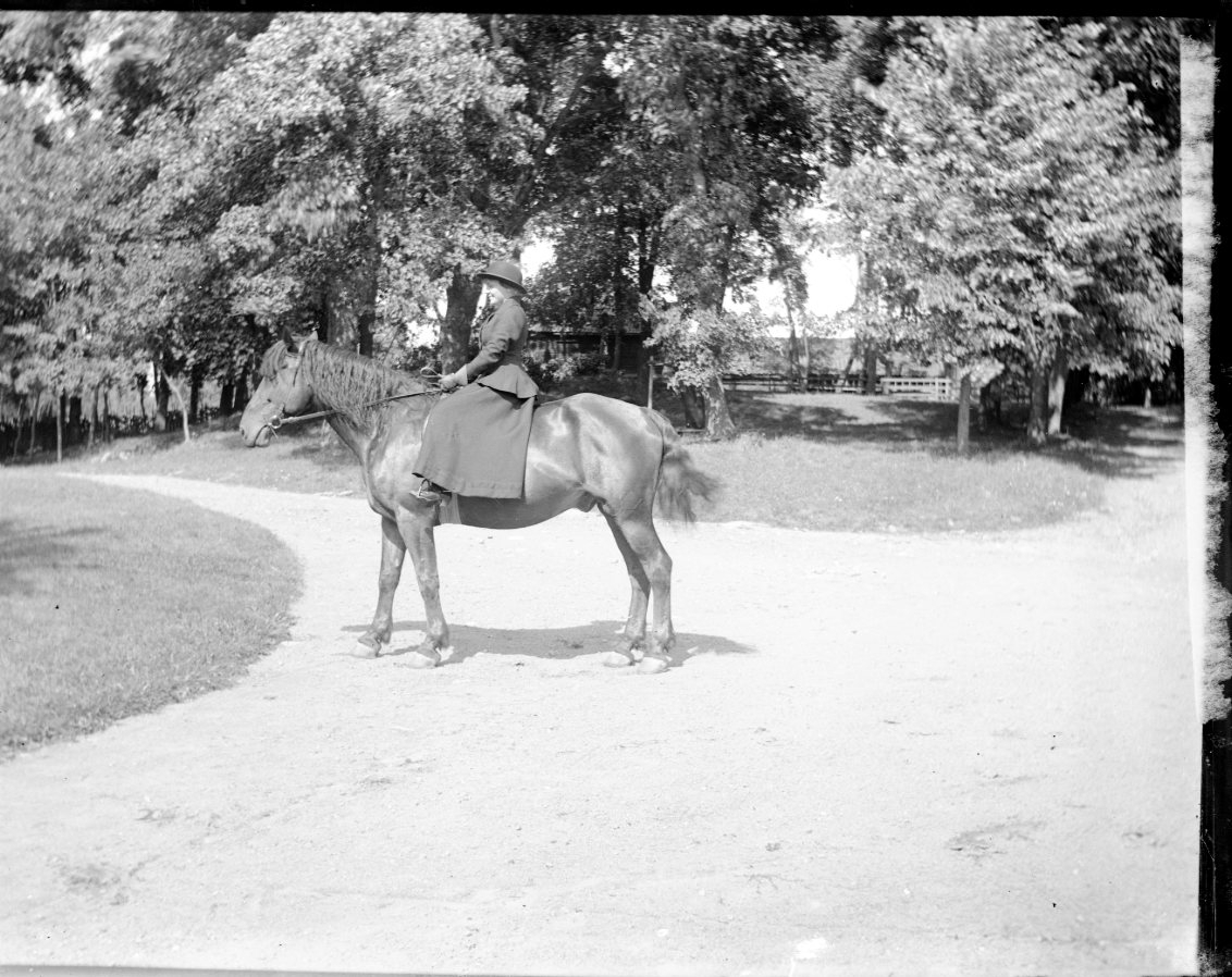 Titel: En kvinna sitter på en häst.