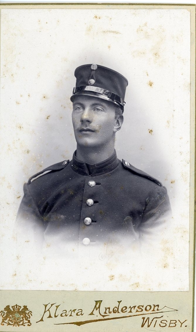 Kabinettsfotografi av en okänd man i militär uniform.