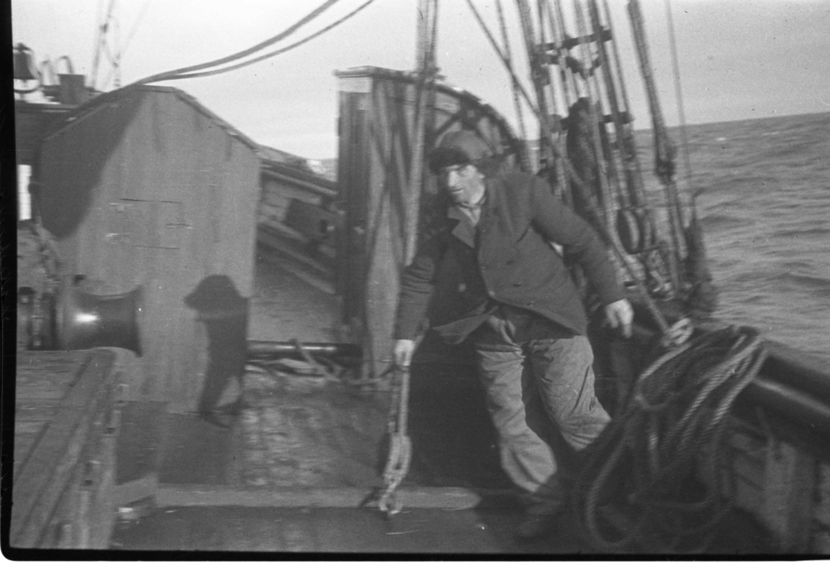 Skepparen Skogvik ombord på Isbjörn, sannolikt på väg till Vitön.