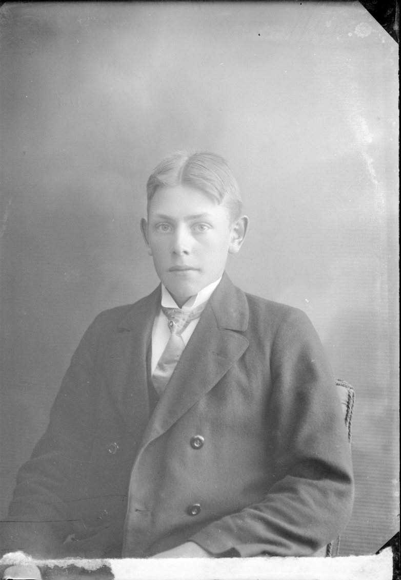 Porträtt av en pojke i övre tonåren. Han bär slips.